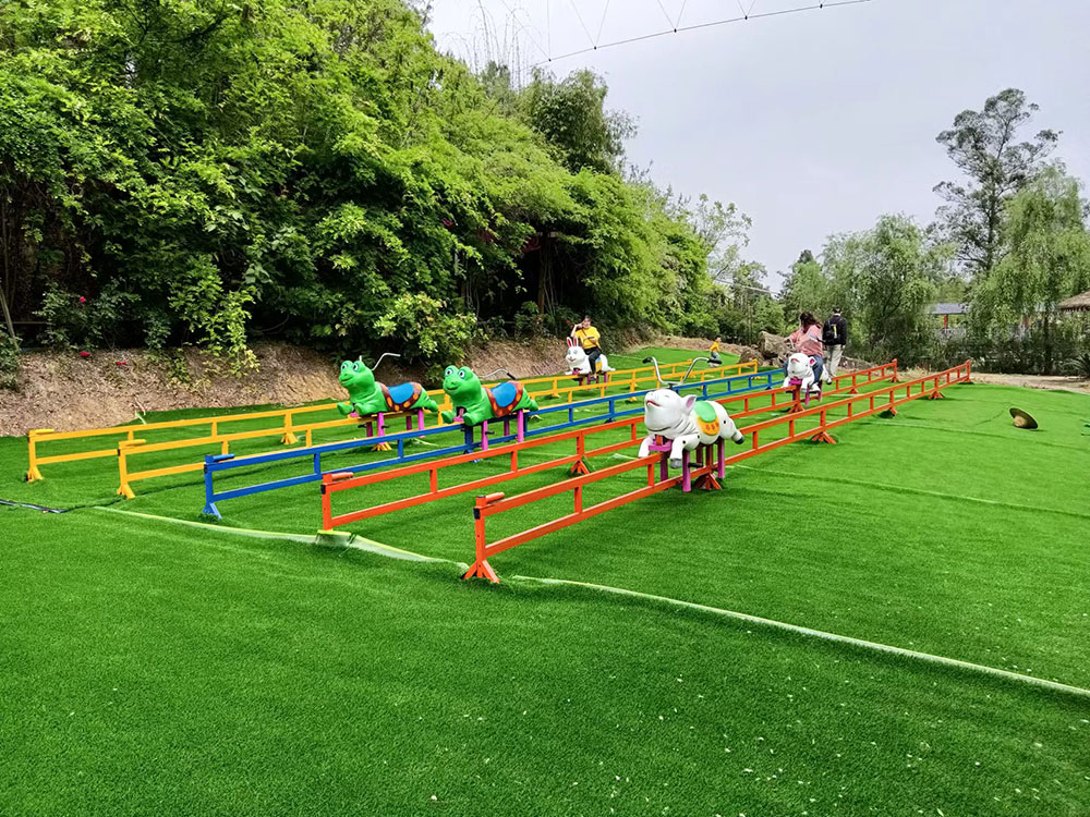 小豬賽跑,軌道長(zhǎng)15米,一般兩條以上組成一組。游客通過(guò)手動(dòng)前后搖動(dòng)手把推動(dòng)小豬前進(jìn),趣味性、互動(dòng)性非常強(qiáng)。是農(nóng)莊、景區(qū)等場(chǎng)地引流必備產(chǎn)品。