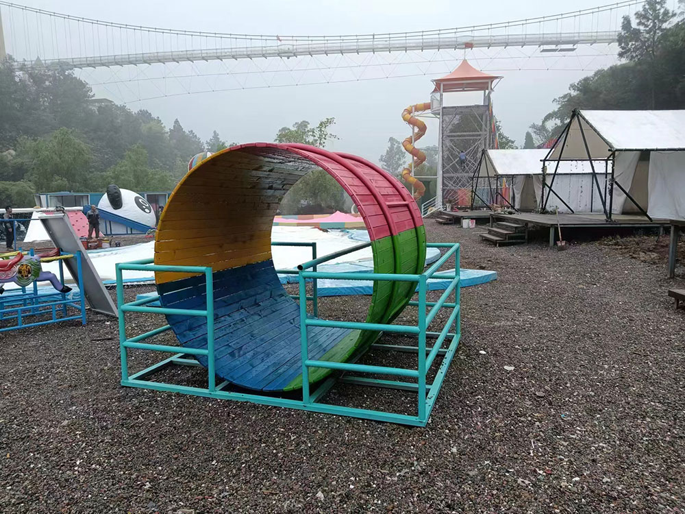 長(zhǎng)2.4米寬2.4米高2米可定制尺寸鋼材:底座80*80、扶手立柱40*60和40圓管、滾筒使用40*40、30*50、側(cè)面防護(hù)32圓管、滾筒板使用25毫米防腐木使用沉頭螺絲固定